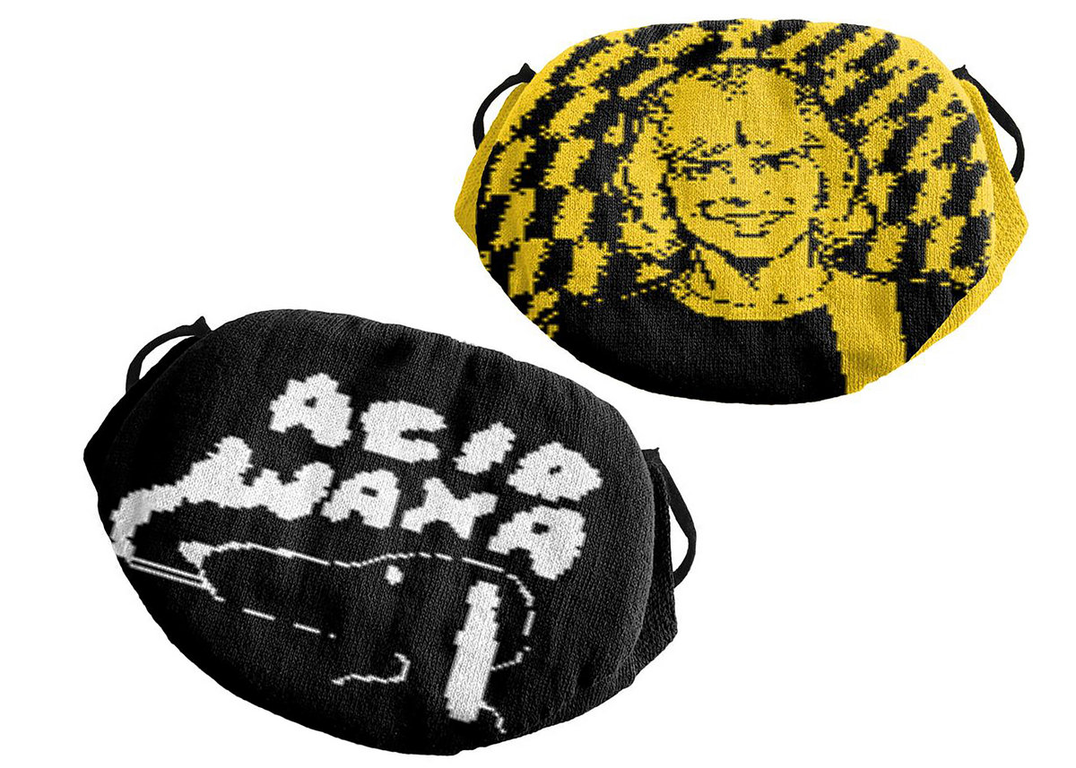 Washable & re-useable Acid Waxa + ROTR knitted cotton face masks (x2) with elasticated grips, made in collaboration with OHM!